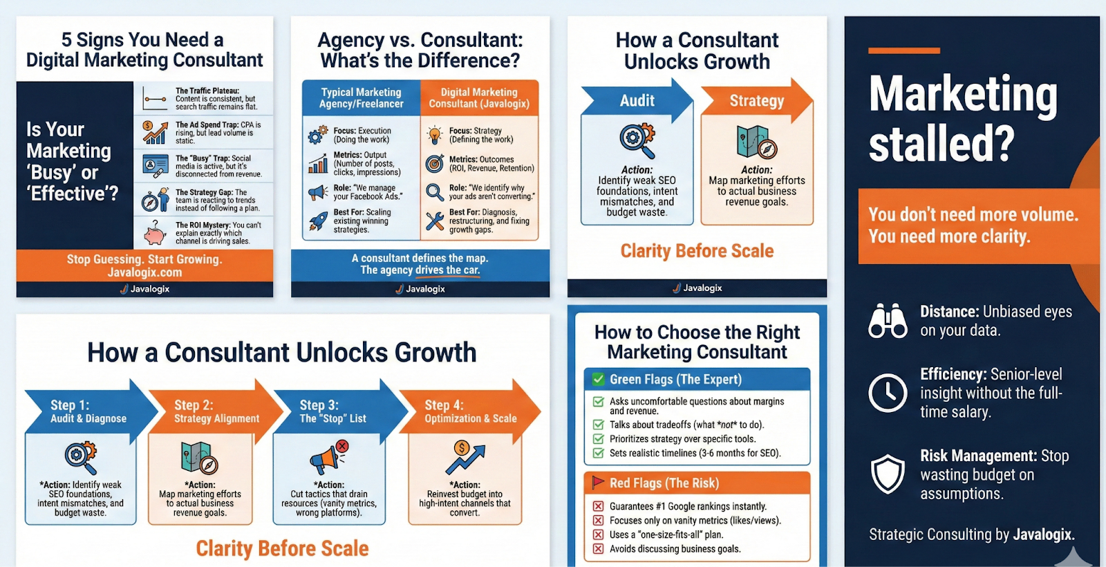 A digital marketing consultant helps businesses identify what is holding performance back, prioritize the right channels, and turn scattered marketing efforts into clear, revenue-focused strategies.